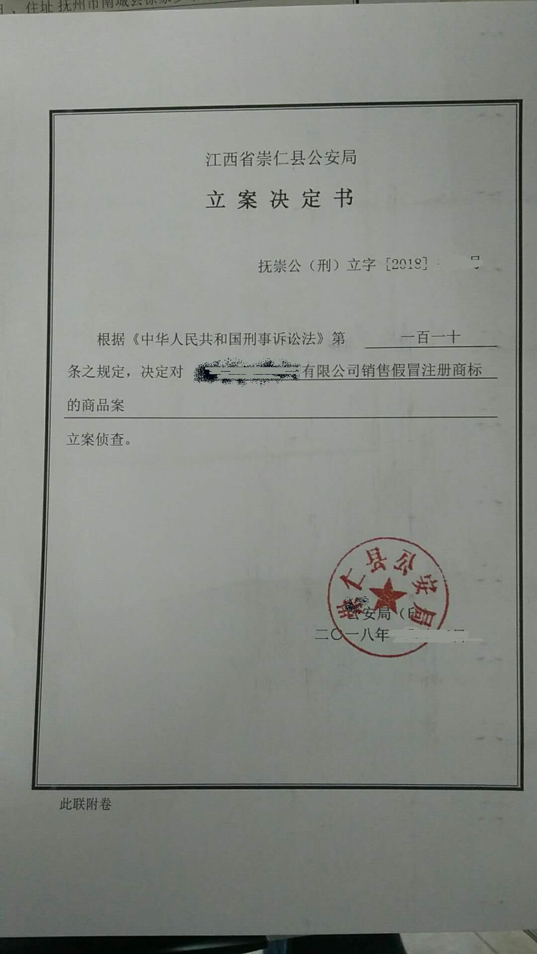 江西打假立案书